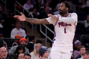 体育资讯4月16日讯 NBA附加赛,76人半场59-55领先魔术。